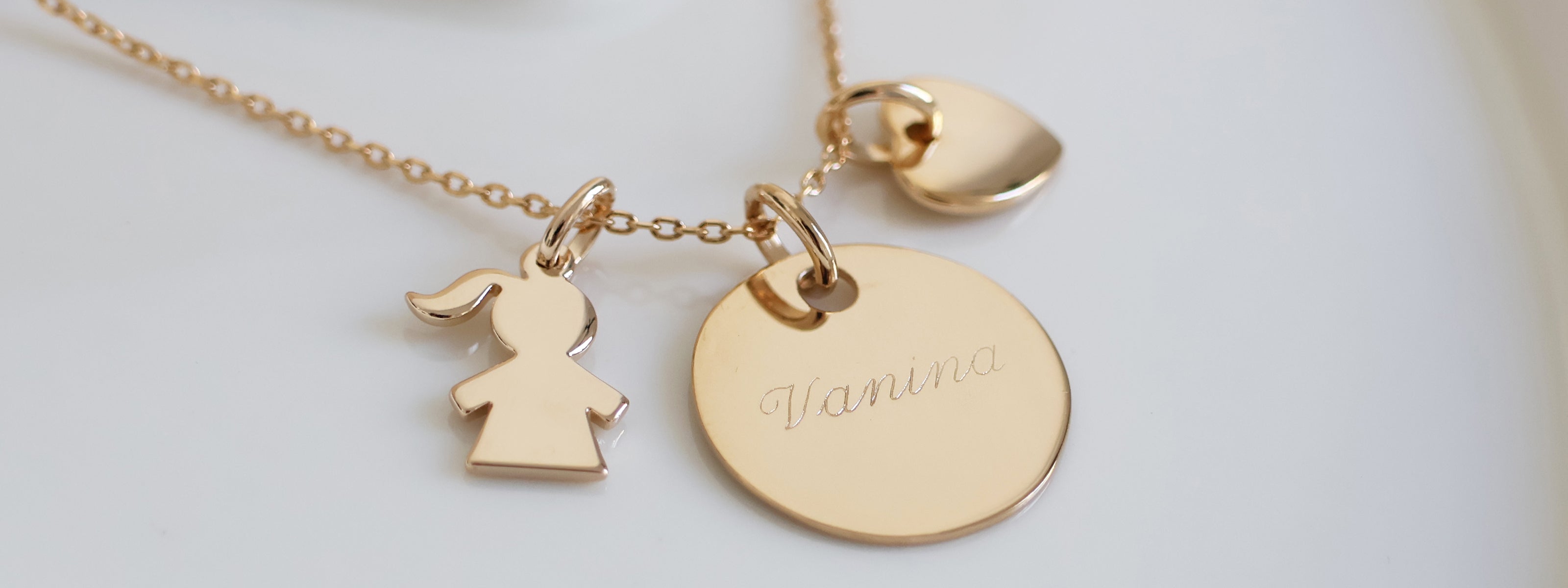 Collier June chaîne et médaille 15mm plaqué or à graver