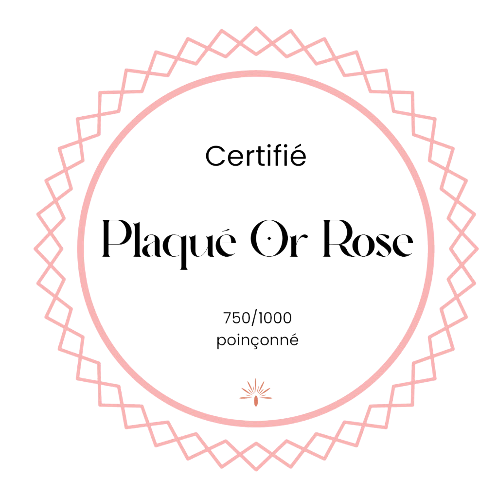 Comme pour nos pièces en Plaqué Or, nos bijoux en Plaqué Or Rose 18 carats sont également réalisés à partir d’une base de laiton recouverte d’une couche de 3 millièmes de millimètre d’Or 750/1000, soit 18 carats, recyclé. Ils sont garantis sans plomb, sans nickel ni cadmium.